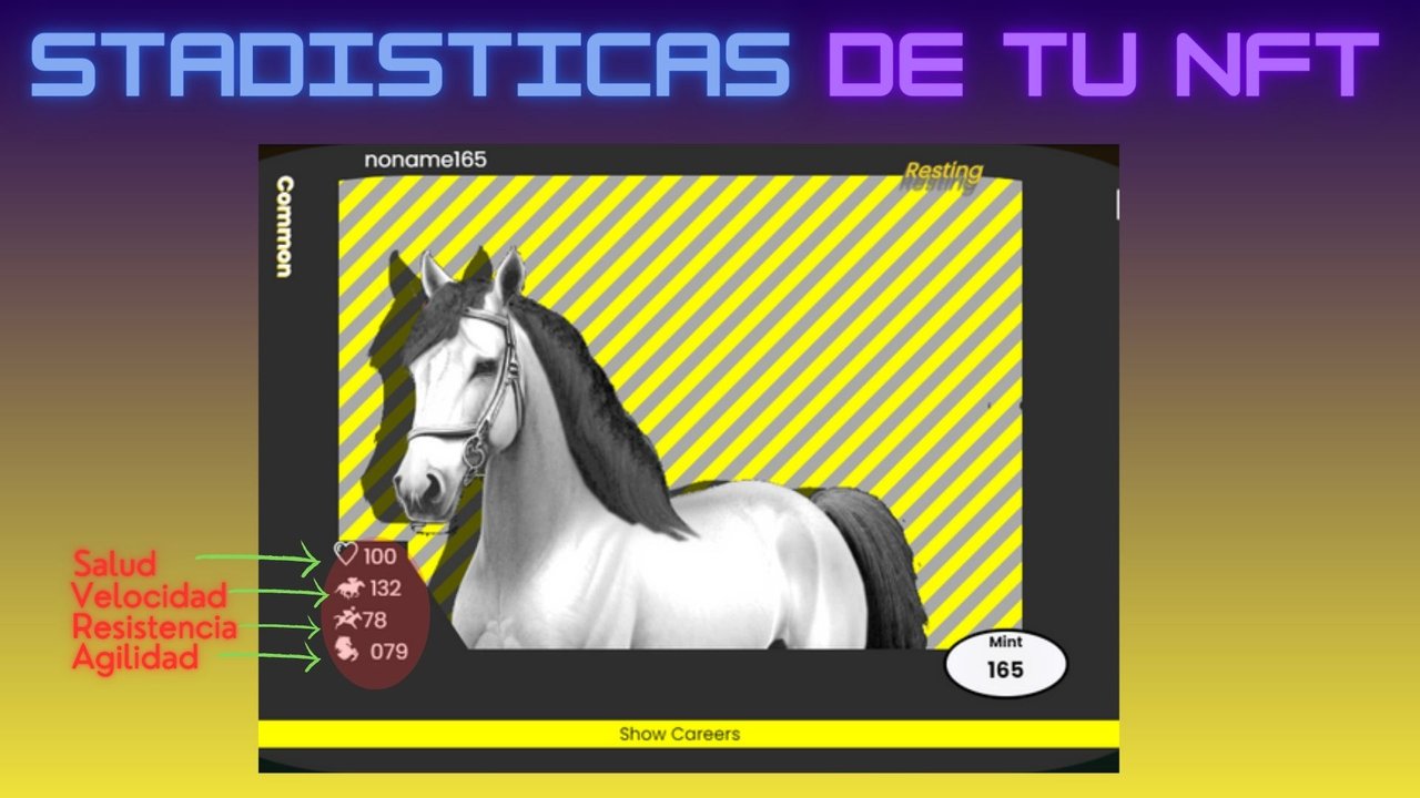 Se suman las estadísticas fundamentales (velocidad, resistencia y agilidad) del NFT equino.